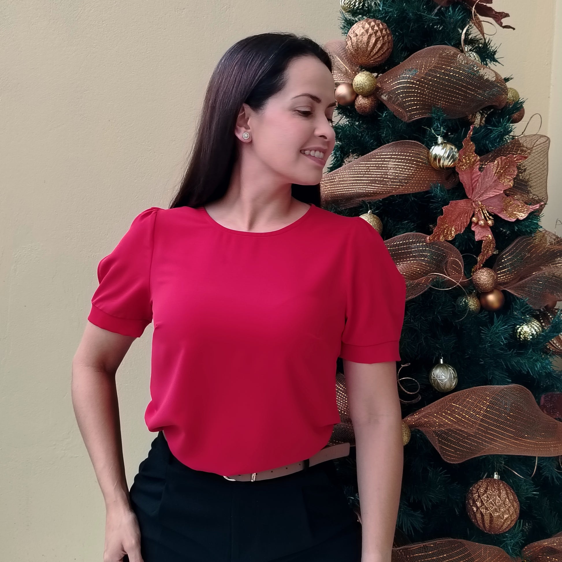 Blusa con color de temporada, manga bombache, hace que tu outfit sea perfecto!