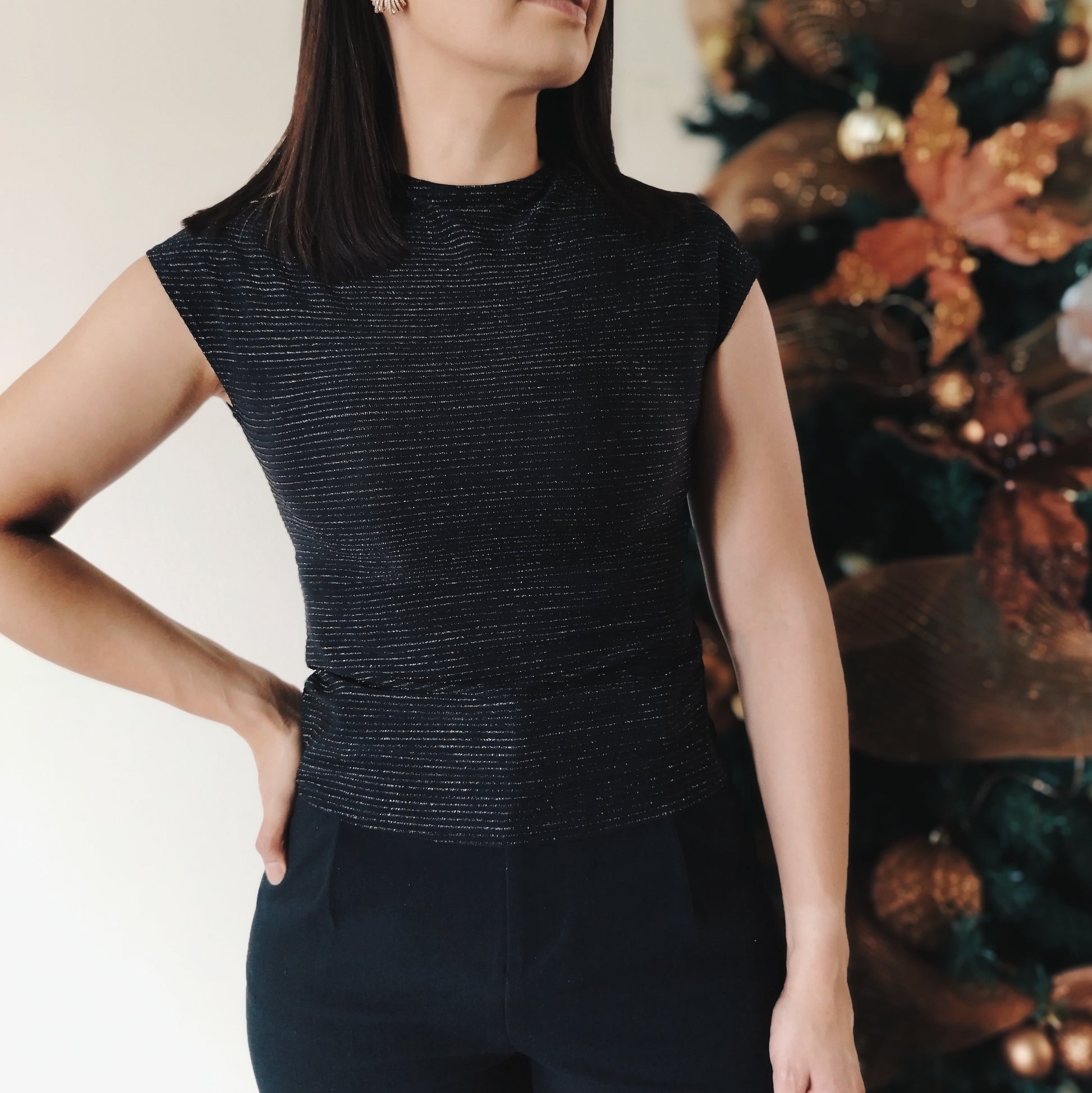 Blusa manga enteriza negro con brillo