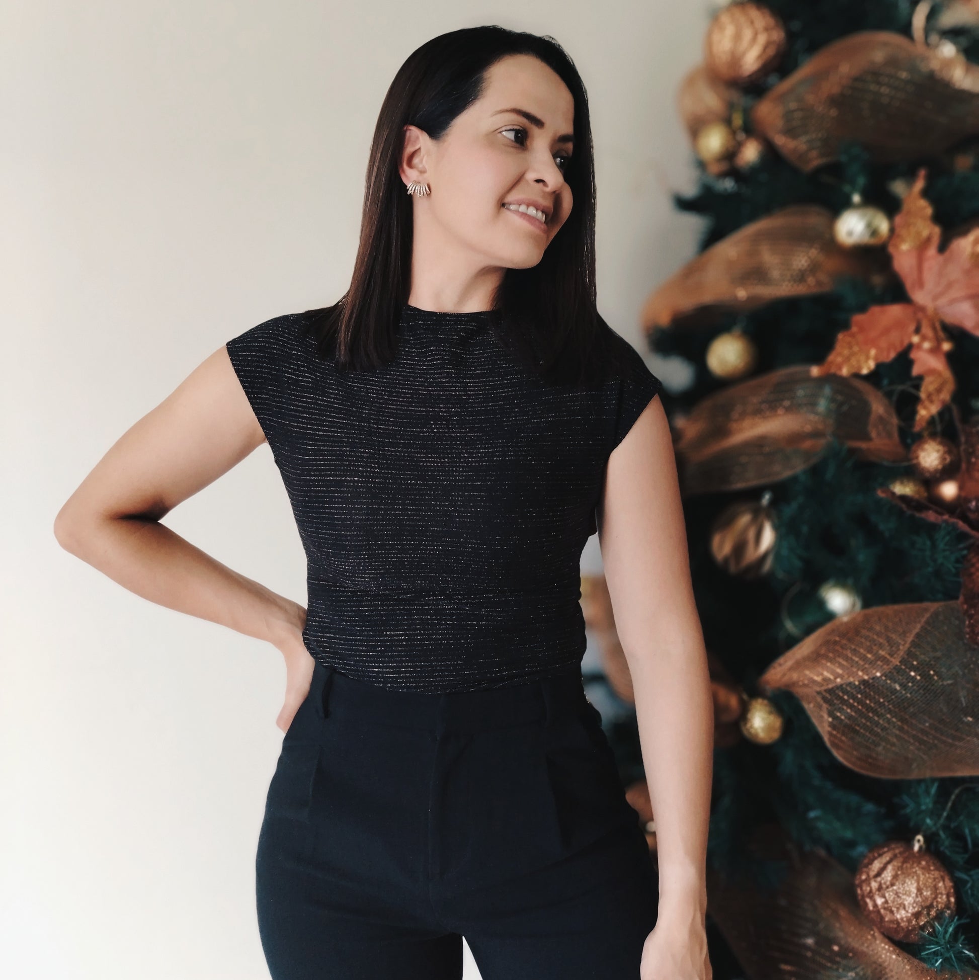 Blusa manga enteriza, ajustada al cuerpo, con brillos.